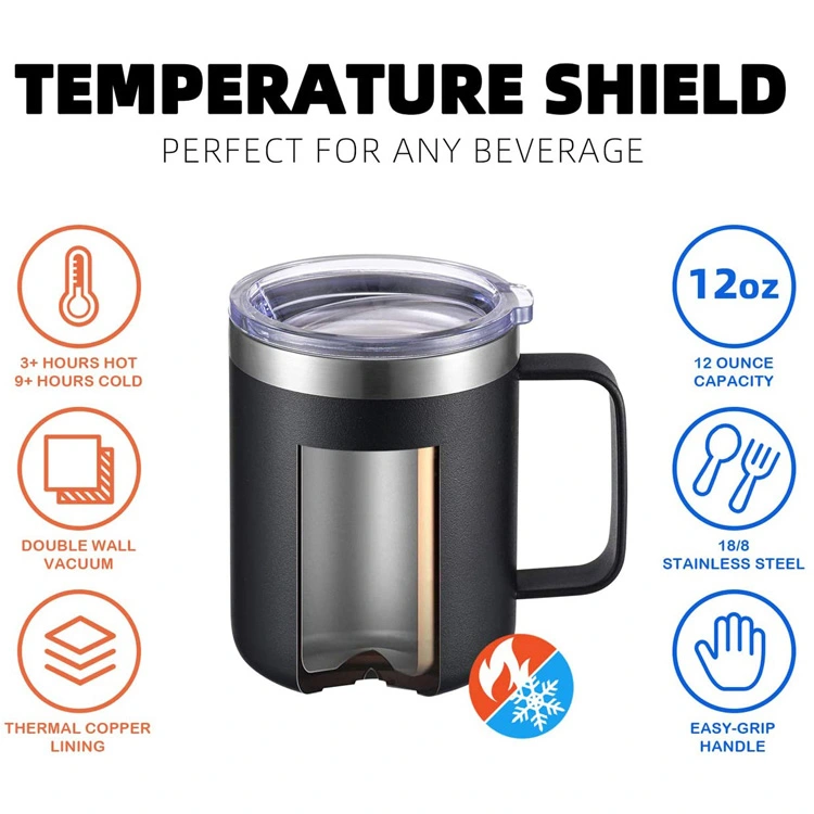 A caneca de aço inoxidável tem revestimento em pó com acabamento fosco durável, tornando-a fácil de segurar e resistente ao suor. Seus dedos permanecerão secos e livres de queimaduras, quer você esteja saboreando um café quente ou uma cerveja gelada. É o companheiro perfeito para viciados em café ou amantes de cerveja.
